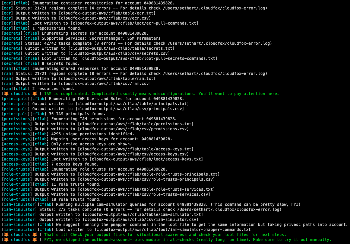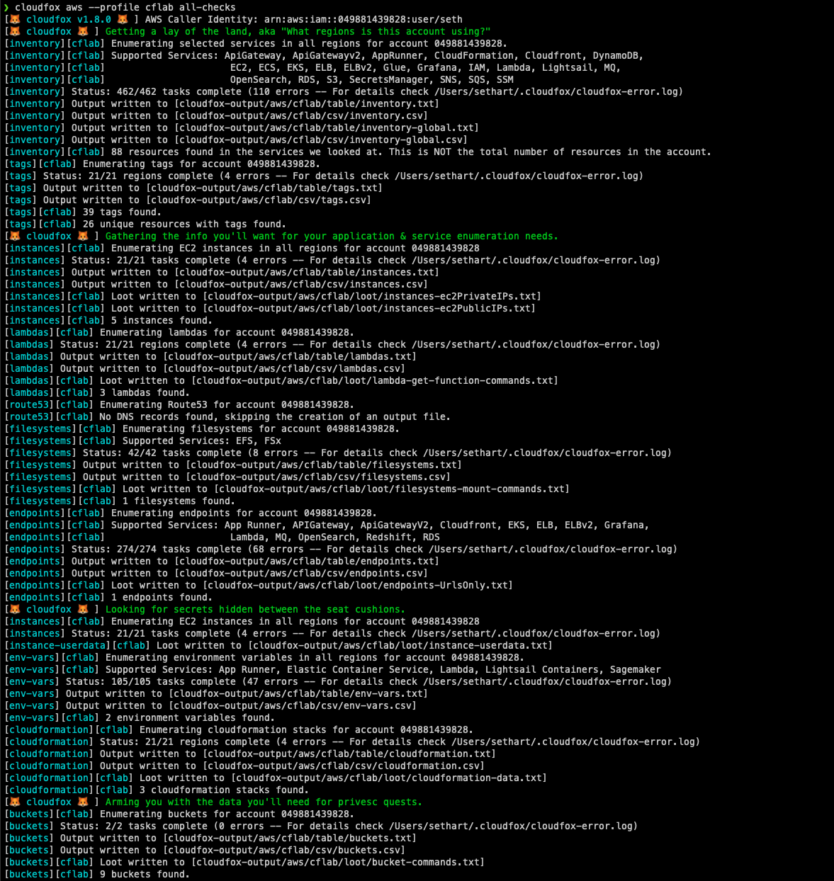 cloudfox aws --profile [profile-name] all-checks