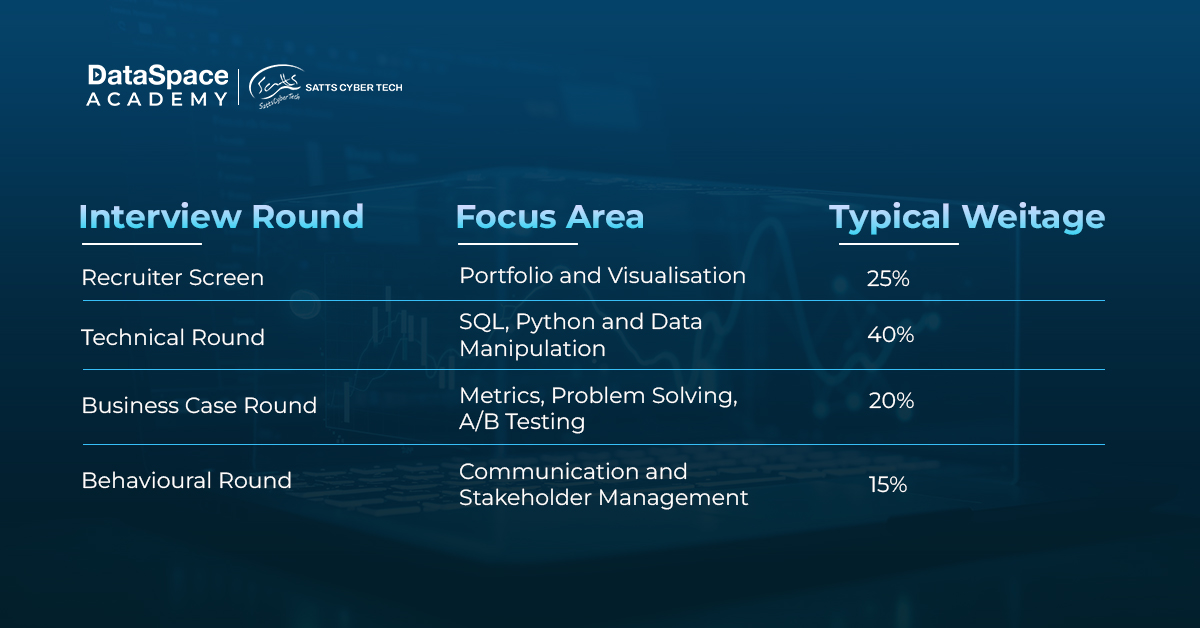 Most of the tech companies follow a multi round structure. Understanding the pattern helps the learners to have a suitable preparation and lead a successful career. You will typically face a recruiter screen, a hiring manager fit discussion and then deep technical rounds. These technical rounds rigorously test your SQL fluency and ability to handle live coding challenges. Following this assessment will make you feel confident while giving the interview. Let us have a clear picture about it.