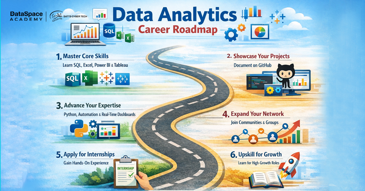 Start with foundational technical skills, build practical projects, learn BI visualization, and develop business and communication abilities that turn insights into actions.